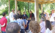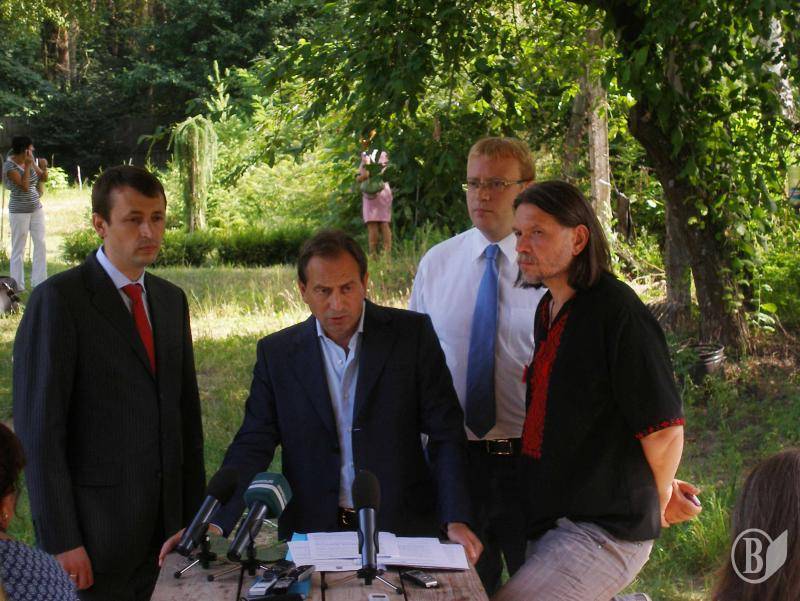 Для журналістів та гостей міста науковці та активісти провели екскурсію Ялівщиною. Показали рідкісні види рослин, що лишилися від ботанічного саду, який колись був на цій території. Миколі Томенку навіть подарували велетенський листок «американської липи». Дерева акліматизувалися і нині ростуть навіть без спеціального догляду. Екскурсійний маршрут пролягав через агробіостанцію Чернігівського національного педагогічного університету. Там на природі вирішили і поспілкуватися.