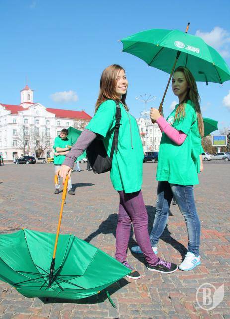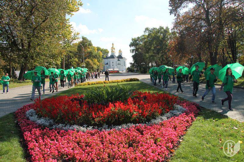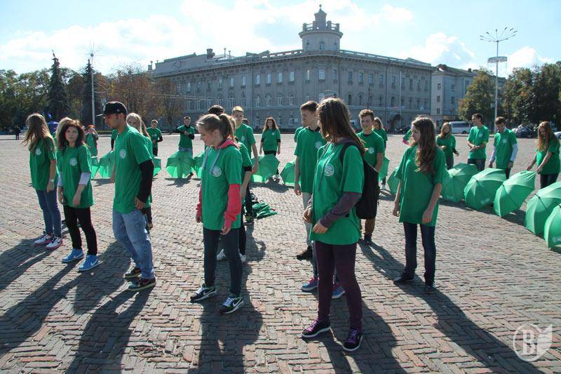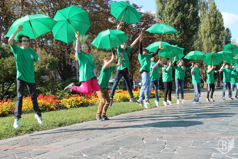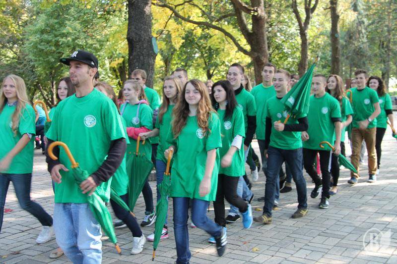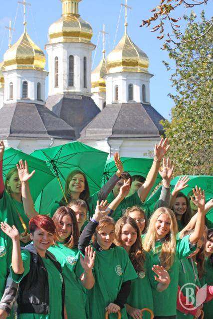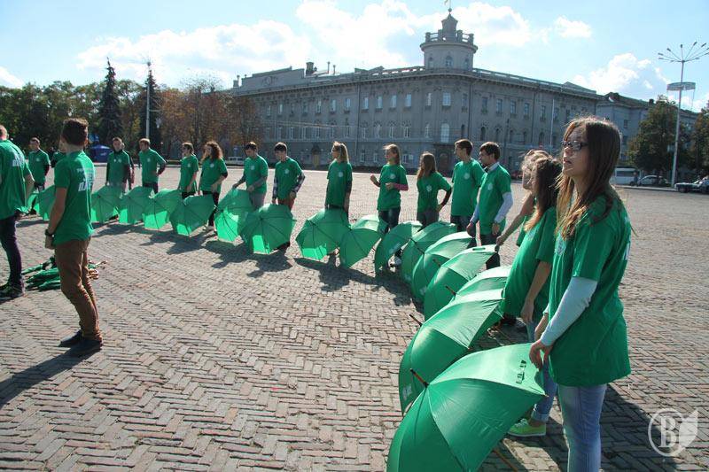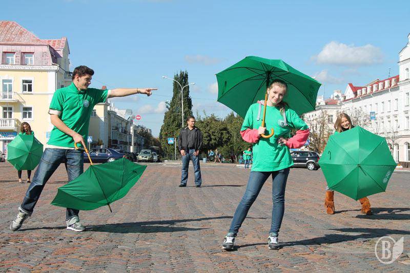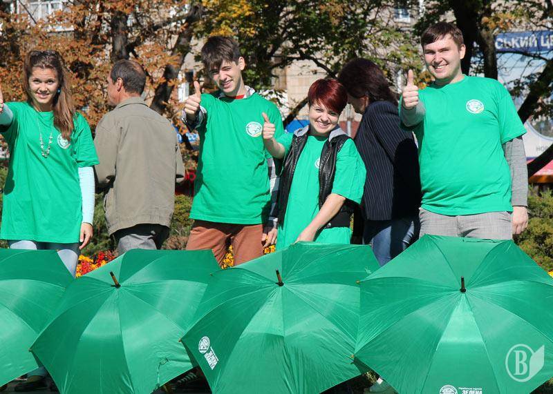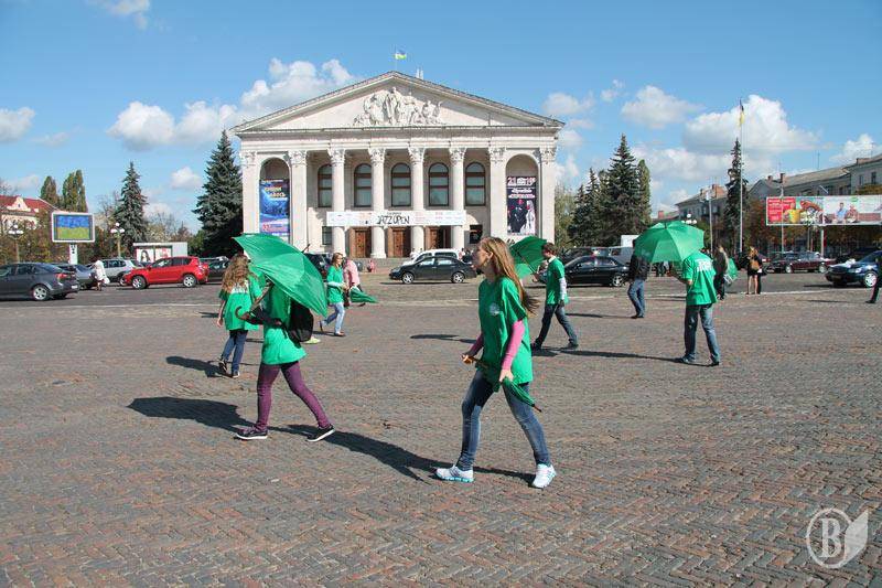 Молоді люди у зелених футболках та із зеленими парасольками пройшли від Валу до «Мега-центру» та знов повернулися на Красну площу Чернігова з піснями, нагадуючи про елементарне – берегти чистоту: чисту воду, чисту землі, чисті продукти.