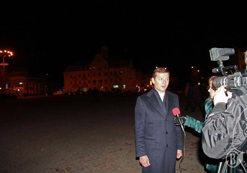 "Я хочу повідомити радісну новину: сьогодні наш лідер Олег Валерійович Ляшко на мажоритарному окрузі однозначно перемагає... ", - сказала вона.