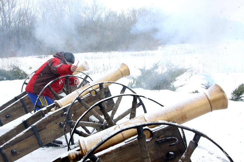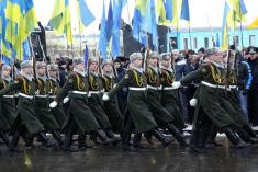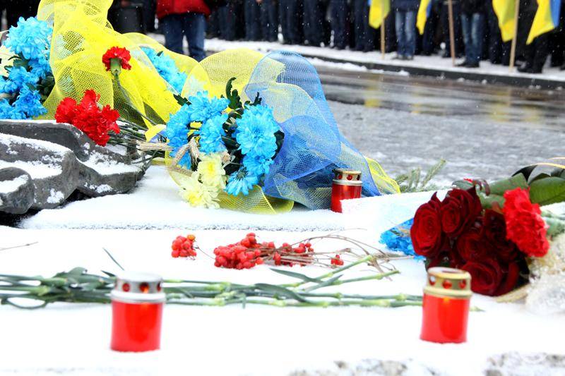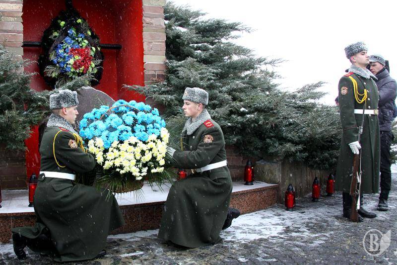 Усе традиційно: хвилини жалоби, салют з гармат, покладання квітів, заупокійна літія, проповідь... Прапори Партії регіонів периметром події. Щоправда, цьогоріч у скромніших кількостях. Військові і ліцеїсти проходять повз меморіал строєм віддають честь полеглим.