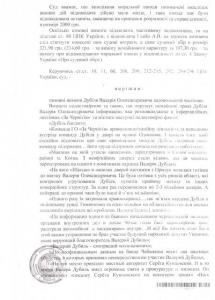 Деснянський районний суд міста Чернігова вирішив, що інформація яка була надрукована в інформаційних листівках «За Чернігів» та газеті «Сіверщина» є «недостовірною та такою, що порушує немайнові права Дубіля Валерія Олександровича».