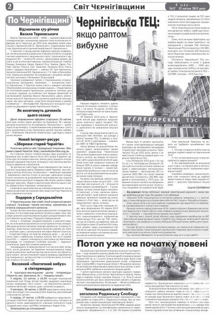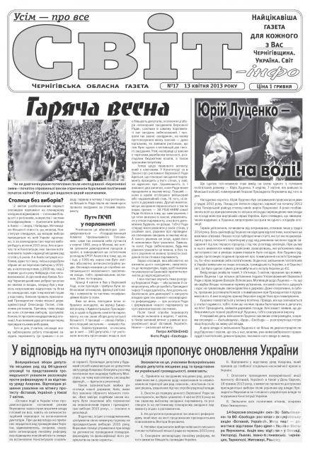 Вийшов друком 17-й номер газети «Світ-інфо», яку видає в Чернігові журналіст Петро Антоненко.