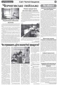 Серед гострих проблем області газета називає ситуацію на Чернігівській ТЕЦ, благоустрій міста. «Українські діти скоро розучаться їсти український борщ», стверджується в публікації «Чи отримають діти екологічні продукти?». Також в газеті інформація з життя області, України і світу, зокрема, сторінка про закордонне українство, культура, гумор.