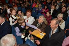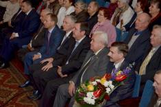Наталію Іванівну Александрову, колишню багаторічну очільницю Радянськослобідської загальноосвітньої школи Владислав Атрошенко привітав квітами. При цьому він наголосив, що у її особі дякує всім учителям за наполегливість, бажання створювати для своїх вихованців кращі умови для навчання.