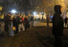 Вчера на 18:00 в сквере Попудренко собрались 150 человек, чтобы своим присутствием сказать: мы за право человека на свободные собрания. В сквере и на подступах к нему дежурило около 50 милиционеров только в форме! Так было во время ГКЧП в сквере Богдана Хмельницкого в 1991 году.