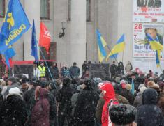 Он объявил имена депутатов от оппозиции, которые приехали в Чернигов, чтобы рассказать о кровавом розгоне «Беркутом» мирного протеста студентов в Киеве.