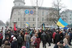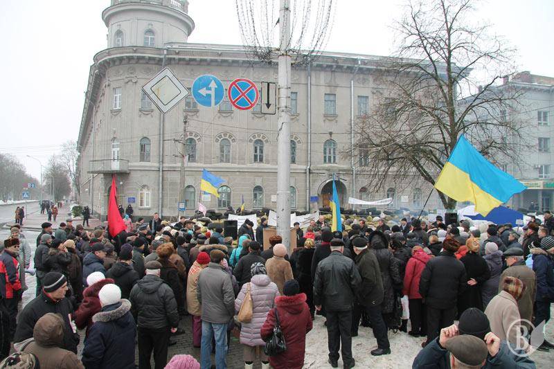 Близько 500 чоловік мітингували проти дій влади 9 лютого на центральній - Красній площі, напроти приміщення обласної державної адміністрації в Чернігові.
