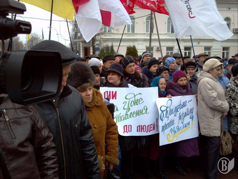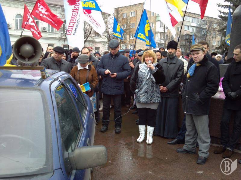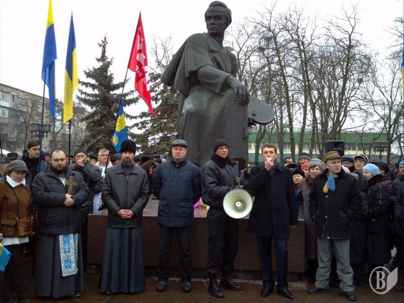 Перед жителями Прилук на віче біля пам'ятника Кобзарю виступили народні депутати України від опозиційних сил актор Богдан Бенюк ( Всеукраїнське об'єднання "Свобода"), Валерій Дубіль (Всеукраїнське об'єднання «Батьківщина»), Сергій Аверченко (УДАР Віталія Кличка).