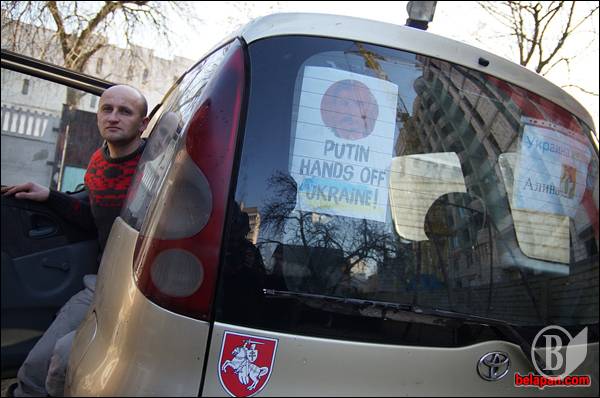 Он заявил БелаПАН, что сделал это в знак солидарности с украинским народом и в знак протеста против русской интервенции в Украину.