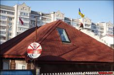 Константин Жуковский, известный активной политической позицией, вывесил на своем частном жилом доме в центре Гомеля флаг Украины.