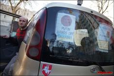 Также активист обклеил свой автомобиль листовками соответствующего содержания.