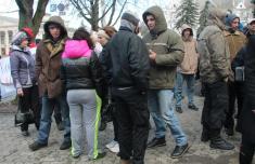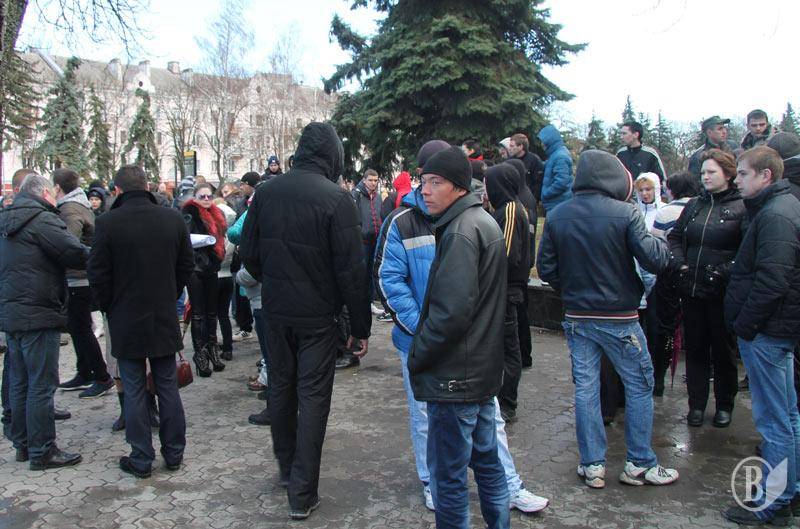 О 12-й годині на Алею Героїв і під обласну державну адміністрації почали підходити «політичні волонтери». Вони підходили колонами. Не знали: чого хочуть, але запам’ятали, що «проти Неживого».