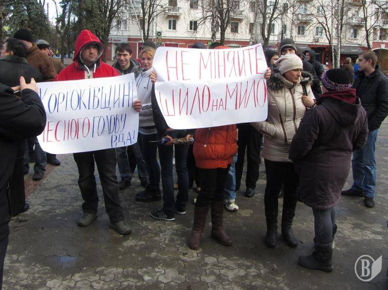 Було 3-4 плакати. Мітингуючі плювали насіння просто під облдержадміністрацією і на Алеї Героїв. На зауваження депутата обласної ради Журмана, якийсь колись балотувався з Рибаковим по одному округу, не реагували.