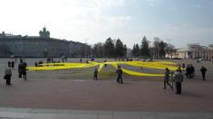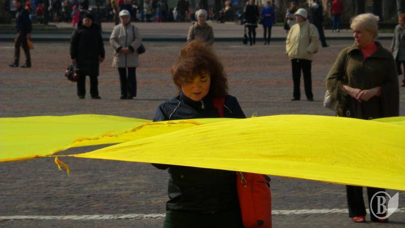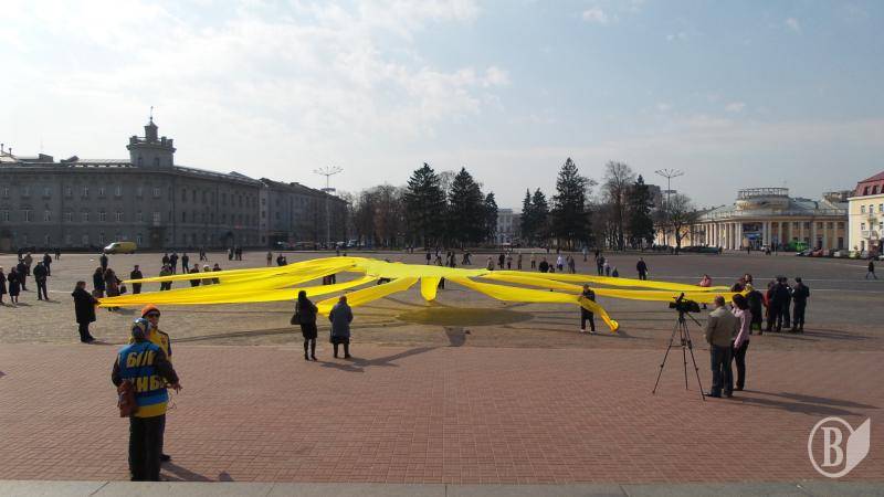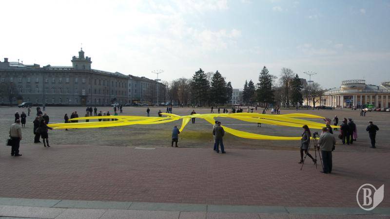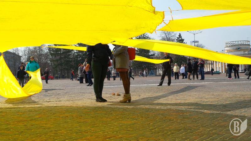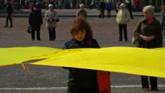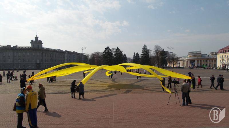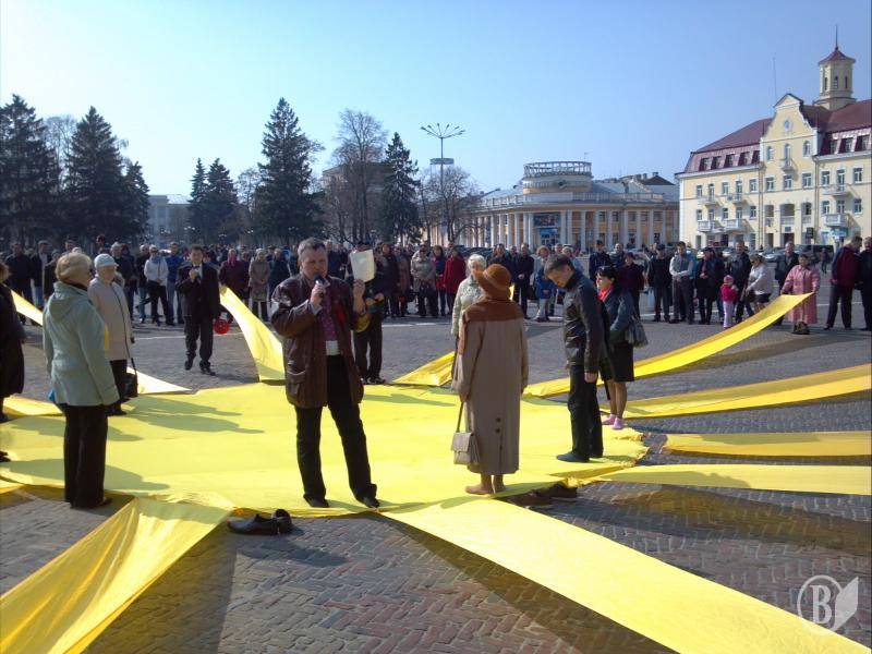 На віче також виступили організатори флеш-мобу "Соце правди сходить над Чернігівщиню". Кожен промінь цього сонця має довжину 9 метрів і 70 сантиметрів.