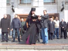 Архиєпископ Чернігівський і Ніжинський, секретар Священного Синоду Української православної церкви Київського патріархату, голова Інформаційного управління Київської Патріархії - Євстратій зачитав Звернення Патріарха Київського і всієї Руси-України Філарета з приводу російської анексії Криму Філарет: «Путін використав засіб диявола – змішав правду з неправдою».
