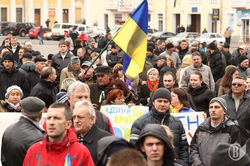 Близько 2 тис. мітингували мітингували в неділю на центральній площі міста, перед обласним театром, за збереження територіальної цілісності України.