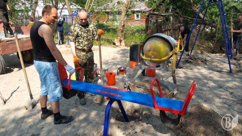 Коли депутати та волонтери прибули на місце майбутнього розважального ігрового майданчика, були приємно здивовані – робота кипіла, адже встановлювали майданчик чоловіки вулиці Кропивницького.