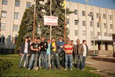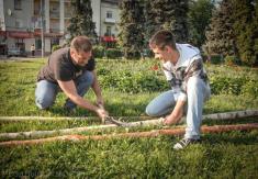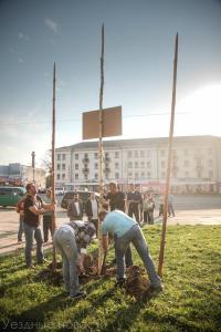 Активисты нежинской самообороны майдана, чтобы предупредить заранее любителей помутить воду в городе, вкопали три кола прямо на"лобном"месте в центре Нежина.