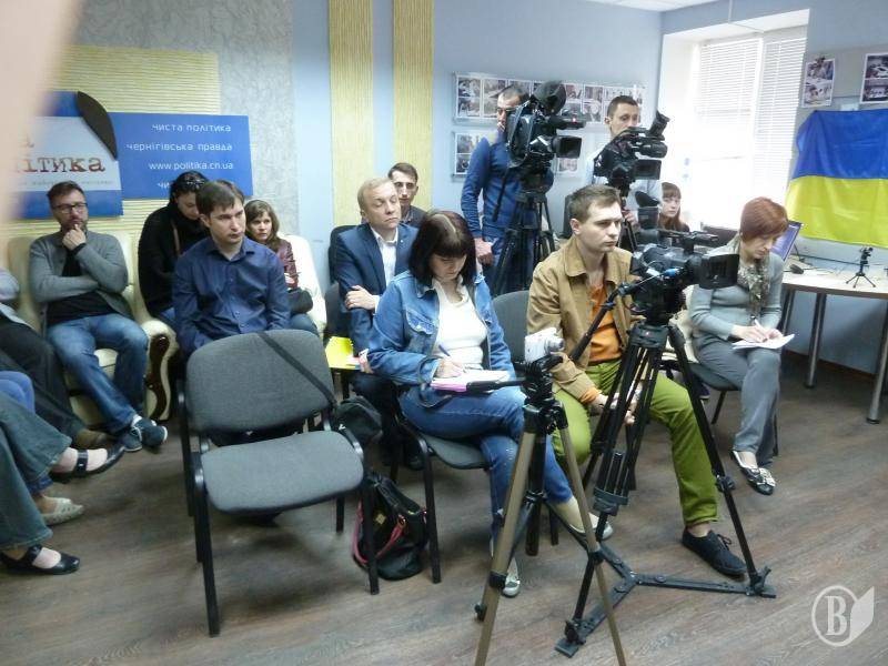 Кандидат в Президенты Украины проводит пресс-конференцию в Чернигове.