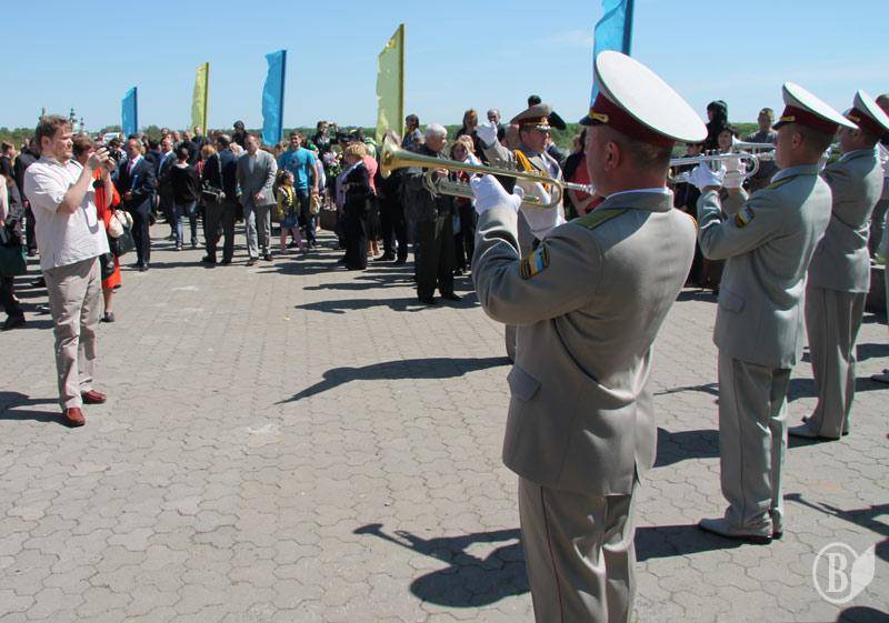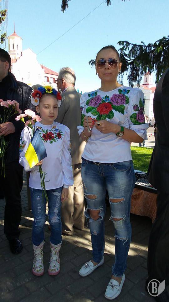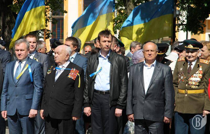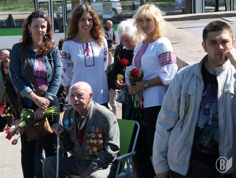 В учасників заходів на грудях були прикріплені синьо -жовті стрічки і символічні червоні квіти маку.