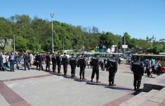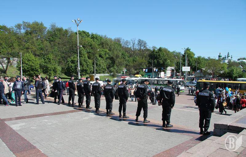 За словами начальника сектора громадських зв'язків управління Міністерства внутрішніх справ у Чернігівській області Сергія Бриля , близько 400 міліціонерів і бійців Національної гвардії в бронежилетах забезпечували порядок під час заходах , мітингу та покладанні квітів біля могили Невідомого солдата.