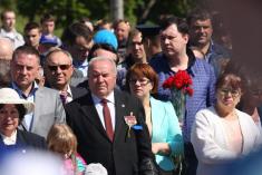 Керівництво міста та області, депутати, ветерани та жителі в 10:05 поклали квіти до братської могили визволителям Чернігова у сквері ім. Попудренка біля центральної площі.