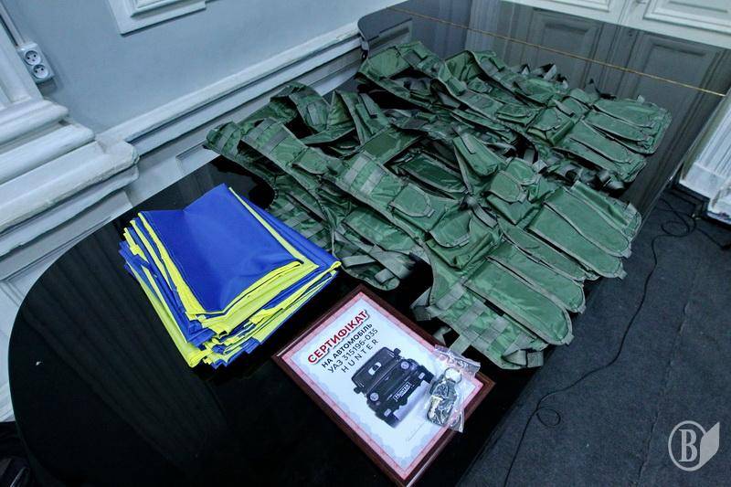 Народный депутат Украины Валерий Дубиль вручил сертификат на автомобиль УАЗ и разгрузочные жилеты для личного состава.