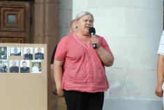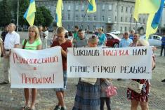 -Я підтримую тих, хто сьогодні виступав на мітингу із зверненням до Президента України. Підтримую оскільки це ті люди, з якими ми разом взимку стояли разом на площі і домагалися зміни влади. Рада, що після всіх кривавих подій, після довгої боротьби, є ті, хто не опустив руки і продовжує боротися до кінця за ті ж ідеали, за які вмирали під час революції патріоти нашої країни. І я підтримую виступаючих в тому, що з влади повинні піти такі люди, як Рудьковський, Атрошенко, Мельничук, Соколов та інші, які є в люстраційних списках. У мене троє онуків і я хочу, щоб вони жили у вільній країні, в якій можна вільно розвиватися як особистості і в якій дотримуються закони.