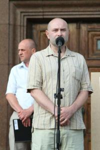- Друзі! Потрібно зараз вимкнути музику, тому що сьогодні в Чернігові чорний день. - З цими словами на сходи перед театром імені Шевченка вийшов Олександр Бондарєв, відомий чернігівський активіст Евромайдану. - Сьогодні на Сході загинув наш бойовий товариш, майданівець Олексій Коновалов. Після Майдану він пішов воювати з терористами командиром стрілецької роти.