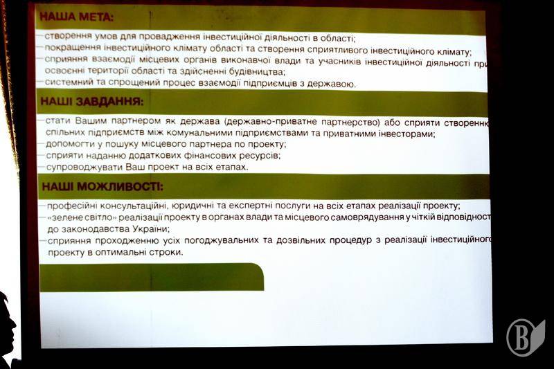 Пока же инвестиционщики занимаются представлением нашего потенциала на Всеукраинском и международном уровне. С этой целью уже подписан меморандум с международной торгово-промышленной палатой. На этой неделе ожидается подписание соглашения с аналогичным украинским учреждением. Изучается также позитивный инвестиционный опыт других регионов, в частности, Львовщины.