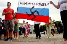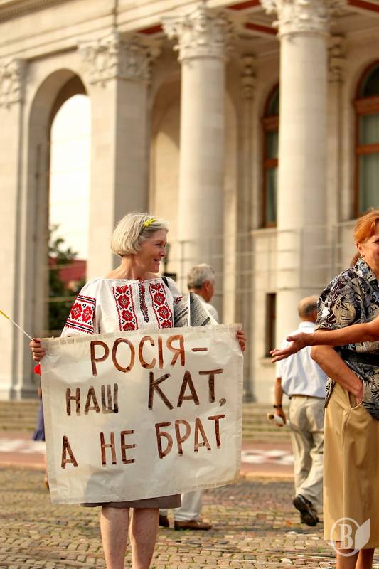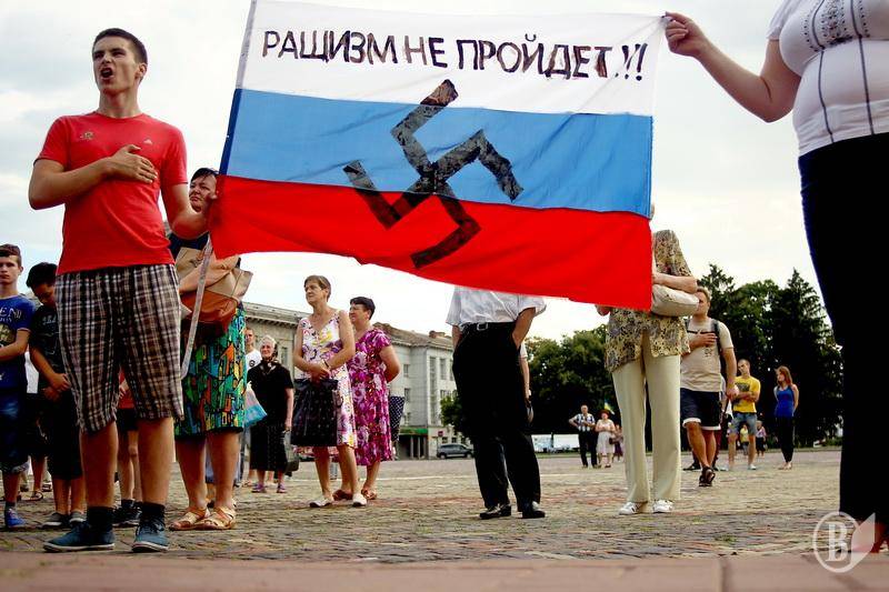 Росіяни вірять своєму телебаченню, що російських військових тут нема. Наївні. Вони не вірять, що російські комплекси, таємно завезені в Україну, збили пасажирський літак. І про те також говорили на мітингу.