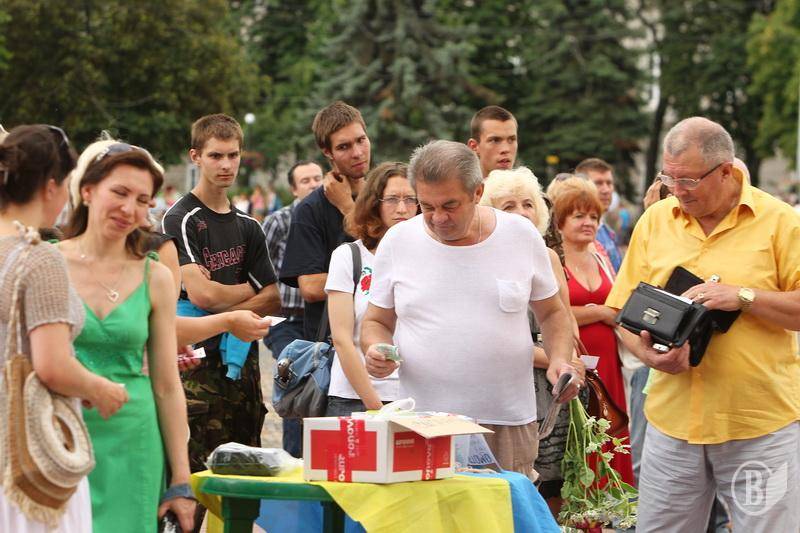 У середньому , кожен учасник мітингу вкинув у пожертви 20 гривень.