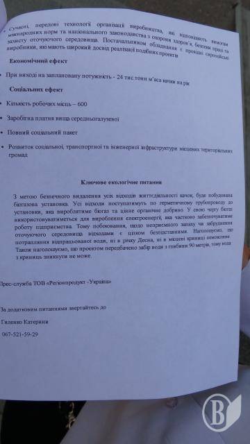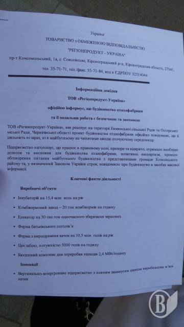 Отже, сонячний день, Остерська міськрада. Заступник директора компанії Ігор Ільєнко розповідає про будівництво комплексу і нюанси виробництва, яке буде розташоване на відстані не менше чотирьох кілометрів до найближчої сільської хати.