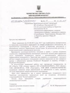 4 вересня 2014 року Чернігівський міськвиконком схвалив ініціятиву націоналістів щодо підтримки українського виробника на території міста. Зокрема, місцева влада рекомендувала керівникам підприємств торгівлі забезпечити інформування споживачів Чернігова про наявність в асортименті товарів російського походження, шляхом нанесення на них товарного ярлика з зображенням прапору Російської Федерації та напису "Товари з Російської Федерації".