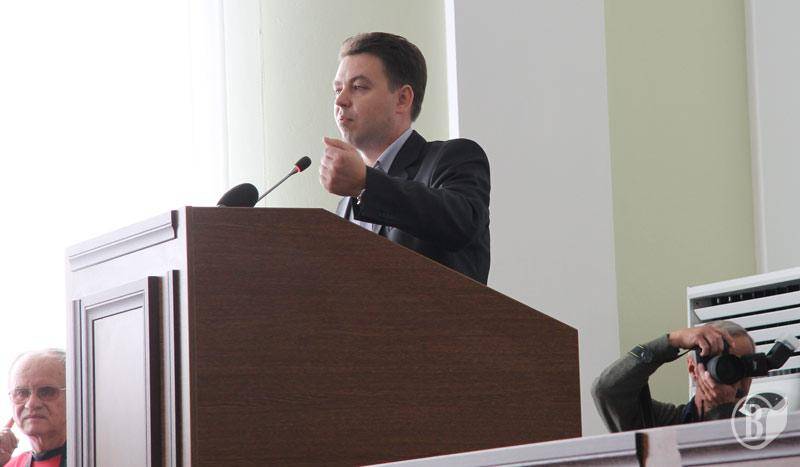 Ще один концерт розіграв на трибуні депутат Василь Білогура. Він довго і правильно говорив про інтереси міста. Говорив, що його група послідовно виступала за відставку мера Соколова. Водночас - необхідність порозуміння. Висловив «глибоку стурбованість» з приводу повернення грошей вкладникам «Демарку».
