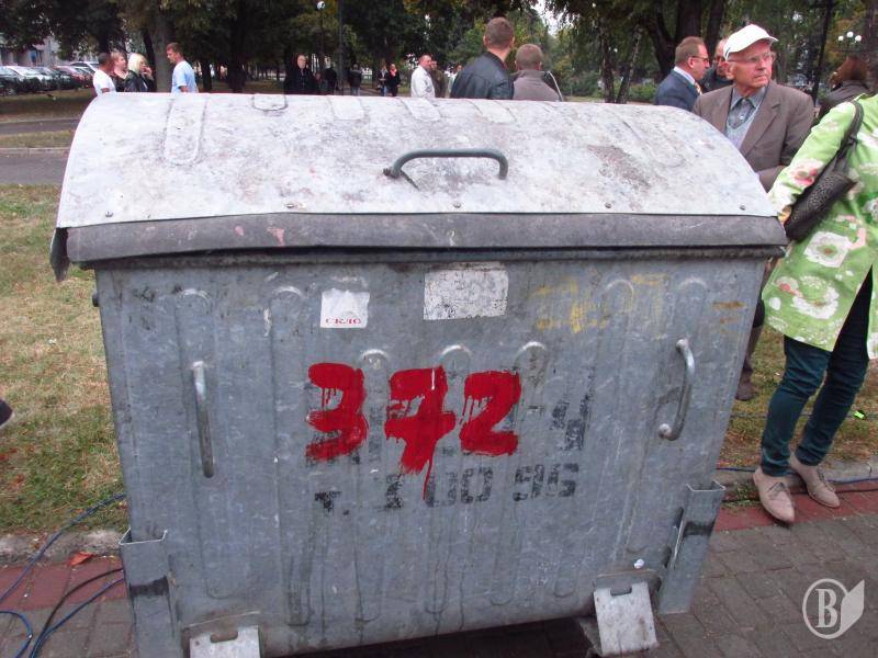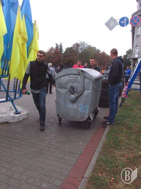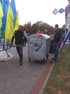 Нижче – відео того, як намагалися «люструвати» Миколу Звєрєва. Зазначимо, що сміттєвий бак привіз представник «Автомайдану» на Чернігівщині Роман Омельченко.