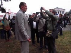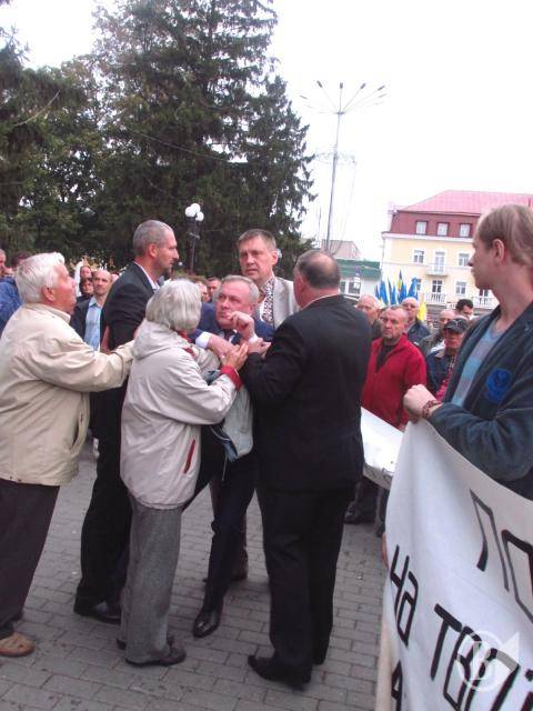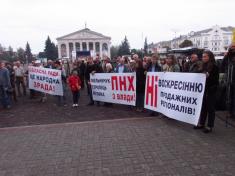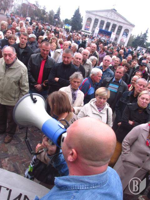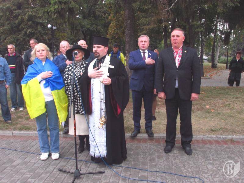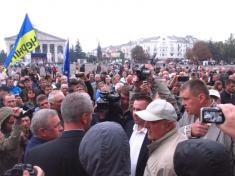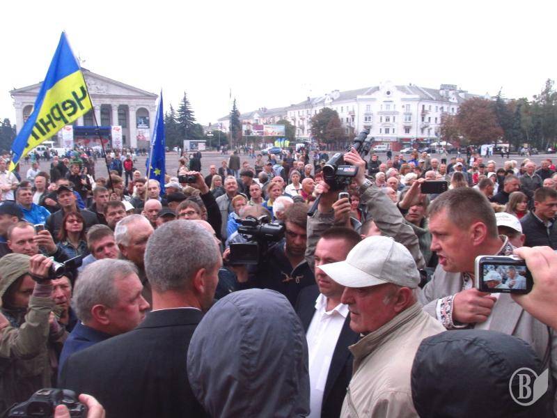 А збиралося віче, аби обговорити скандальне рішення останньої сесії облради. Нагадаємо, депутати 72 голосами «за» попросили Петра Порошенка призначити новим очільником ОДА Валентина Мельничука.