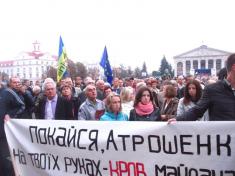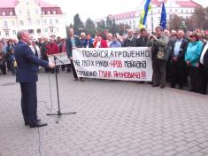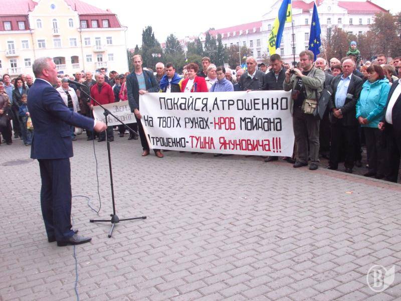 «Не дамо повернутися до влади старим регіоналам», «Облрада зрадила громаду» - такі основні меседжі віче. Валентина Мельничука охрестили символом старого режиму, а обласну раду(докупи і міську) попросили саморозпуститися.
