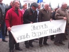 Нова українська традиція – відправляти неугодних чиновників у сміттєвий бак дійшла і до Чернігова. На сьогоднішньому віче у Чернігові пролюструвати намагалися голову обласної ради Миколу Звєрєва. Провокацію влаштувв Володимир Поліщук.