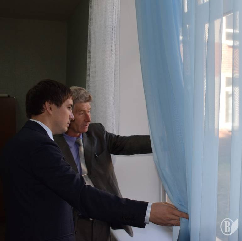 Після урочистостей Анатолій Євлахов поспілкувався з директором гімназії Михайлом Федоренком. Останній розповів про давню проблему – довготривалий ремонт даху, який до сих пір не завершено.