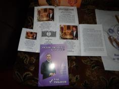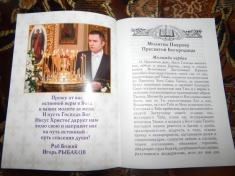 В пакетах – шариковая ручка, свеча, агитка, целых (!) три сборника молитв, на каждом из которых фотография Рыбакова. Один из молитвенников называется «Исповедь и святое причастие».