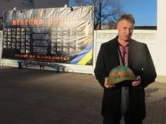 Активісти місцевого осередку ВО "Свобода" на відкритті стенду "Небесна сотня" передали до Прилуцького краєзнавчого музею імені В. І. Маслова перший експонат майбутньої виставки "Революція Гідности" – розмальовану каску з Майдану.