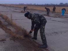 Військовослужбовці прочистили понад 1200 метрів швів злітно-посадкової смуги та вирубали довкруги чагарники і дерева. Також, фахівці окремого інженерного-автомобільного батальйону провели підготовчі роботи для подальшої заливки бетону.
