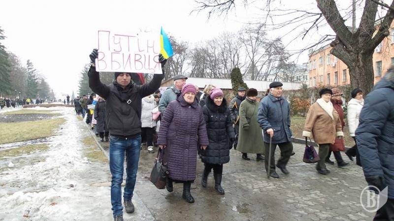 Черниговцы протестуют против войны России с Украиной, которую Кремль начал с Крыма и засылает своих наемников не только на Донбасс, а во все уголки нашей земли, особенно в города. Неподалеку от Катерининской церкви, около памятникам борцам за волю Украины, была отслужена панихида по украинским жертвам русской агрессии.
