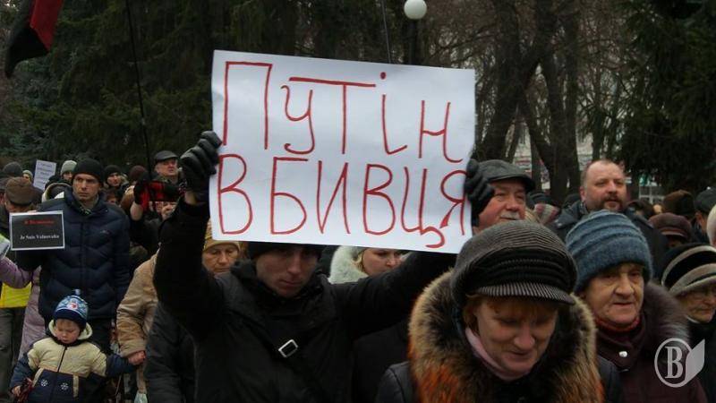 Жители города указали на палача украинского народа. Женщины, мужчины и дети почтили память жертв русской военной агрессии.