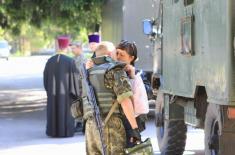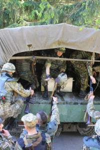 Перед відправкою на схід України вояків освятив протоієрей отець Роман та благословив їх дорогу. Крім цього, рідні та друзі побажали бійцям гідно виконати свій обов’язок та повернутися додому живими.