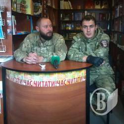 На прес-конференції у Культурно-мистецькому центрі "Інтермеццо" комбат учбового центру "Десна" друг "Беркут" представив нового комбата запасного батальйону Добровільного Українського Корпусу друга «Данського» - киянина і одного з "кіборгів", що брав участь в обороні Донецького аеропорту.