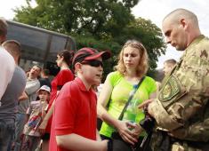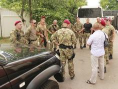 Провести бійців на Схід прийшли колеги, друзі та рідні міліціонерів. Журналісти могли на власні очі переконатися, що зведений загін повністю забезпечений харчами, обмундируванням, засобами захисту та озброєнням.