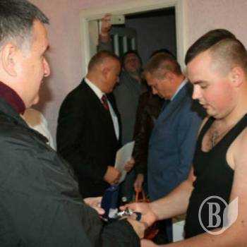 У медичному закладі УМВС Аваков відвідав своїх товаришів по службі і вручив тринадцяти з них відомчі нагороди - нагрудні знаки «За відвагу в службі» та цінні подарунки.