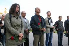 В руках квіти, портрет Георгія Гонгадзе та цьогорічне гасло акції «Озбройтеся правдою!».